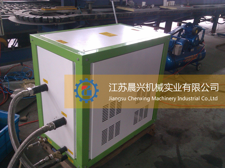 3) 層壓機(jī)原來(lái)的加熱系統(tǒng)由電加熱和熱風(fēng)鼓吹,現(xiàn)優(yōu)化采用了連體盤腸式熱水物質(zhì)循環(huán)加熱,降低電耗,達(dá)到了節(jié)能效果。